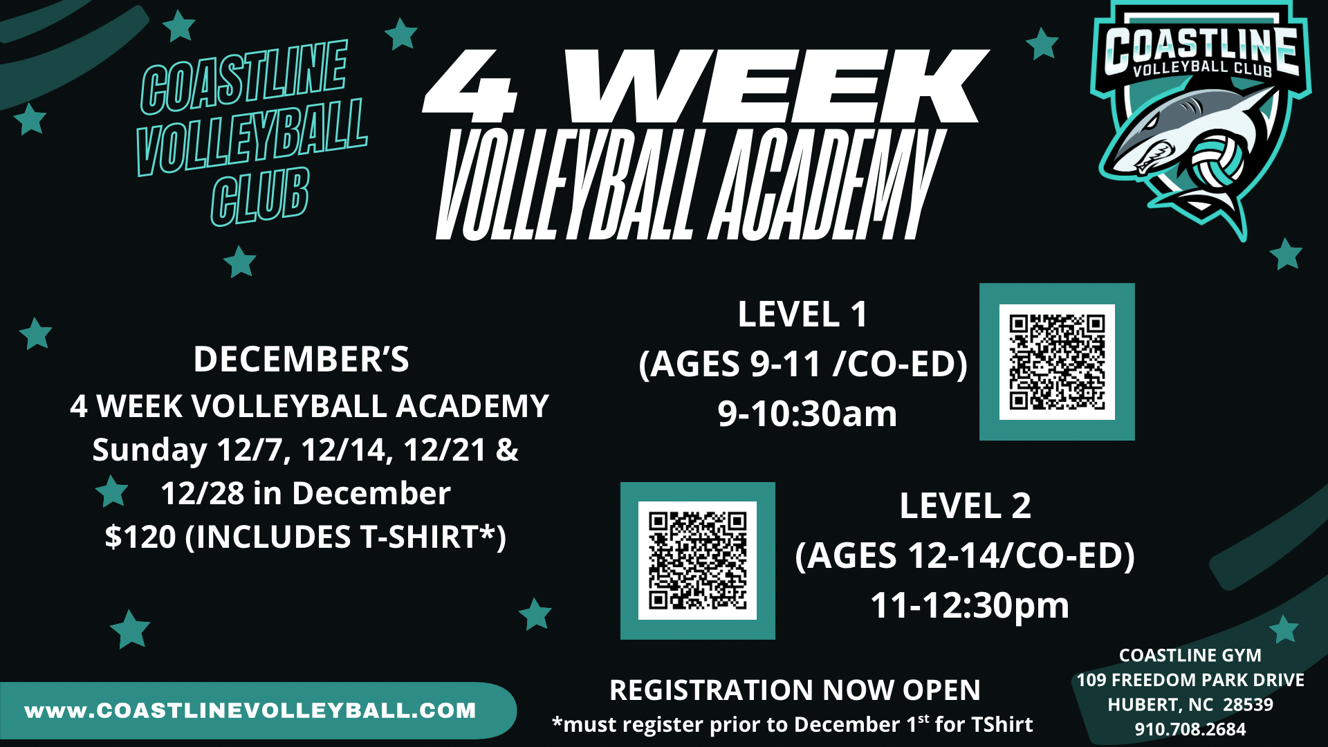 December’s 4 week Academy available for registration. Register before 12/1 in order to receive TShirt